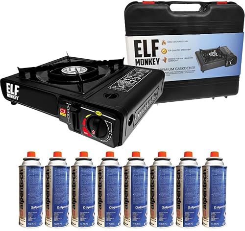 Der Elfmonkey Campingkocher ist der perfekte Begleiter für alle Camping- und Outdoor-Fans. Mit seiner kompakten Größe und der Leistung von 2,2 kW ist er ideal für kleinere Zelte oder das Kochen im Freien.