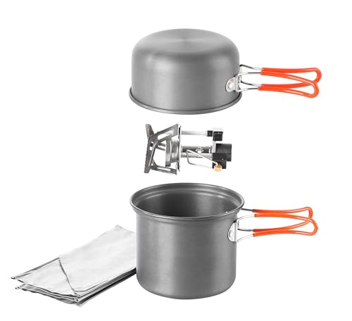 Der 300ml-Topf dient gleichzeitig als Deckel für den 750ml-Topf und maximiert die Platzeffizienz. Das Kochgeschirr-Set besteht aus langlebigem, schnell erhitzendem Aluminium.