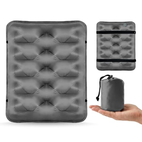 Einfach durch Mund aufblasen lässt sich ein bequemer Sitz entstehen. Nach der Nutzung kann es leicht entleert, zusammengefaltet und in der mitgelieferten Tragetasche verstaut werden.