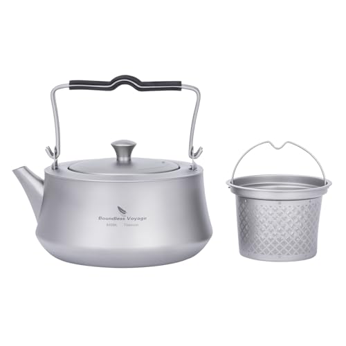 iBasingo 800ml Wasserkessel Camping Titan Teekessel mit Infusor für Losen Tee Kaffee Teekanne für Gaskocher mit Filter & Klappgriff Outdoor Ultraleicht Tragbare Metall Wasserkocher Ti3093D