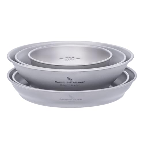 iBasingo Titan Schalen Platte Ultraleichte Einwandige Schüssel Teller Outdoor Camping Geschirr Küchenutensilien mit Tragetasche Ti1110T