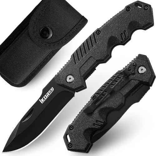 Das IKORES Klappmesser ist das perfekte Werkzeug für jeden Mann, der immer ein langlebiges und vertrauenswürdiges Messer bei sich trägt. Mit seinem Aluminiumgriff und Nylonscheide ist es ideal für Camping-, Wandern- und Jagd-Aktivitäten geeignet.