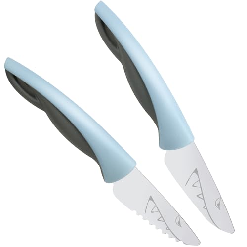 Kindermesser 2-teiliges Küchenmesser-Set zum Schneiden Krokodil, Edelstahl, Perfekte Geschenke für Weinachten Geburtstag, Kinder Messer ab 2 jahre (Blau Haie)
