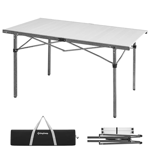 Der Campingtisch ist mit einem Aluminiumrahmen ausgestattet, der sowohl robust als auch leicht zu transportieren ist. Die Tischplatte kann einfach aufgerollt werden und passt sich perfekt in die Tragetasche ein.