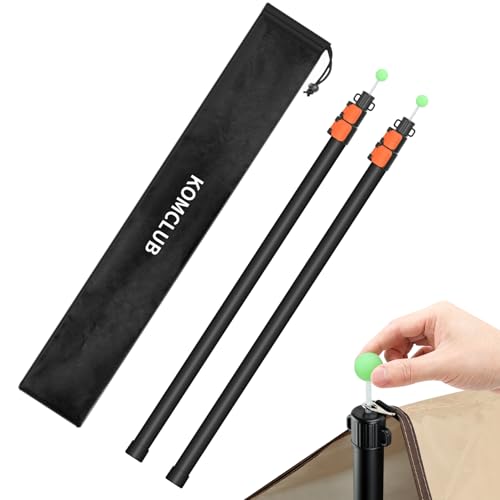 Unser KOMCLUB Zeltstange Teleskop 2 Stück Set ist das ideale Werkzeug für Ihre Zeltausstattung. Mit einer Länge von bis zu 247cm und einem Durchmesser von 1,96“/5CM passt es perfekt zu den meisten Zeltleinen und Schlaufen.