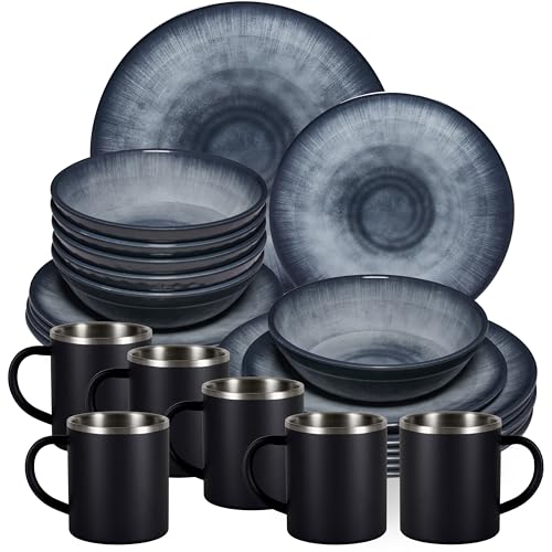 Das Melamin-Geschirr-Set Jesolo Grau ist ideal für Camping, Outdoor-Aktivitäten und Familienabende. Mit seinen 24 Teilen bietet es alles, was Sie brauchen, um Ihre Mahlzeiten auszustatten.