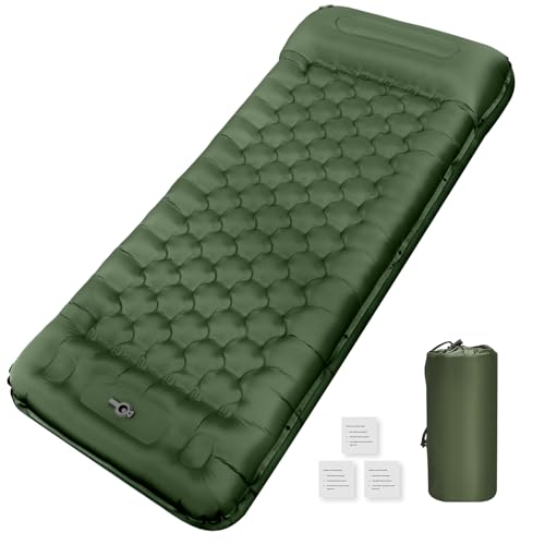 NAPASA Isomatte Camping, 14CM Verdicktes Aufblasbare Matratze mit Eingebauter Fußpresse Pumpe & Kissen, Wasserdicht, Anti-Ripstop Schlafmatte für Wandern, Strand, Reisen, Zelt(Grün)
