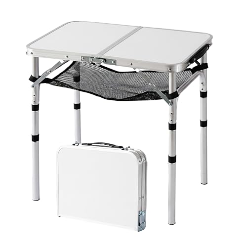 Der Tisch selbst besteht aus Aluminium und MDF, ist wetterfest und bietet dank seines weißen Designs einen eleganten Look. Der Griff macht es leicht, den Tisch bequem hin- und herzutragen.