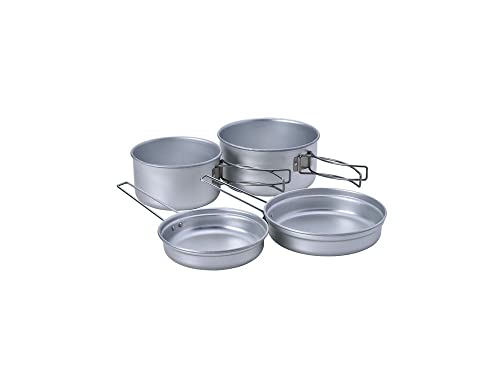 Snow Peak Aluminium-Kocherset, leichtes Campingset aus Aluminiumlegierung mit Zwei Töpfen und Zwei Pfannen/Deckeln, stapelbar und zusammenklappbar mit Netztragetasche für Camping und Outdoor