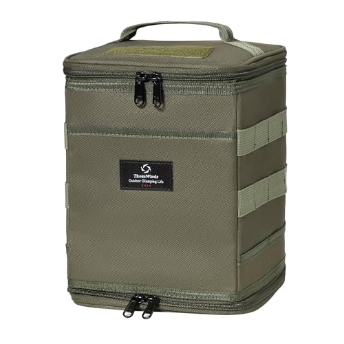 Die Thous Winds Camping Petroleumlampe Tasche ist ideal für die Aufbewahrung von Laternen, Kochern, Gasflaschen und anderen Camping-Ausrüstungen. Die robuste Tasche aus 1000D Polyestergewebe bietet eine sichere und geschützte Aufbewahrung für Ihre Gepäckstücke.