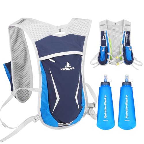 Die Trinkweste verfügt über 5 Taschen für Wasserflaschen, Karten und Schlüssel sowie über reflektierende Streifen auf der Vorder- und Rückseite für erhöhte Sichtbarkeit in dunklen Umgebungen.