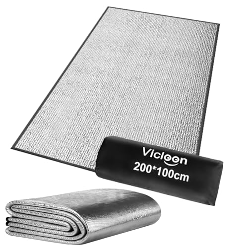 Vicloon Aluminium Isomatte Camping, 200×100 cm Alu Isomatte Schaummatten, Wasserdicht Thermomatte Bodenmatte, Lsoliermatte Lsolierdecke, Thermomatte Kompakt Leich für Camping Yoga Sport