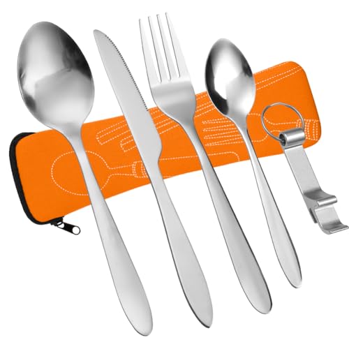 Das Set besteht aus 6 Camping-Geschirren, einschließlich einer Gabel, Löffel, Messer und Flaschenöffner sowie einer Aufbewahrungstasche. Es ist leicht zu tragen und einfach in einen Rucksack oder eine Handtasche zu stecken.