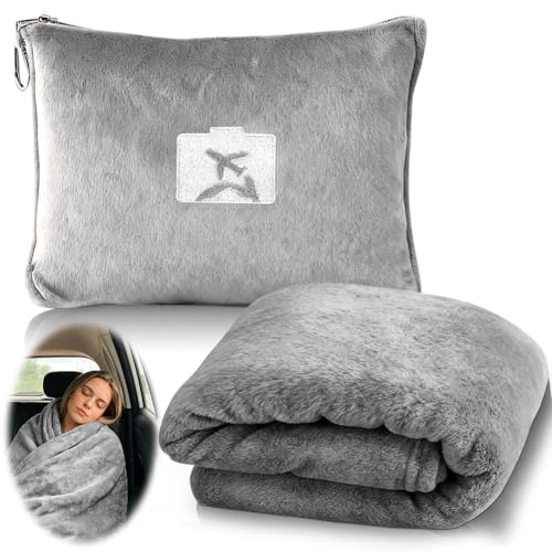 Weiche & Warme Reisedecke für Flugzeug & Auto, Reisedecke Kissen 2 in 1, 152 x 127 cm Weiche Flugzeugdecke, Ultraleichte Kuscheldecke Kompakte Decke für Flugzeug, Auto, Büro, Zuhause (Grau)