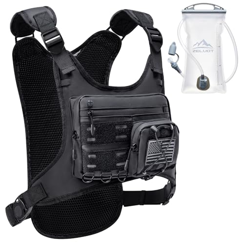 Zelvot Laufweste mit 2L Trinkblase, Europäisches Originalpatent, Verstellbare Taktische Brusttasche für Damen Herren, Reflektierende Trinkweste Laufen für Marathon, Trailrunning